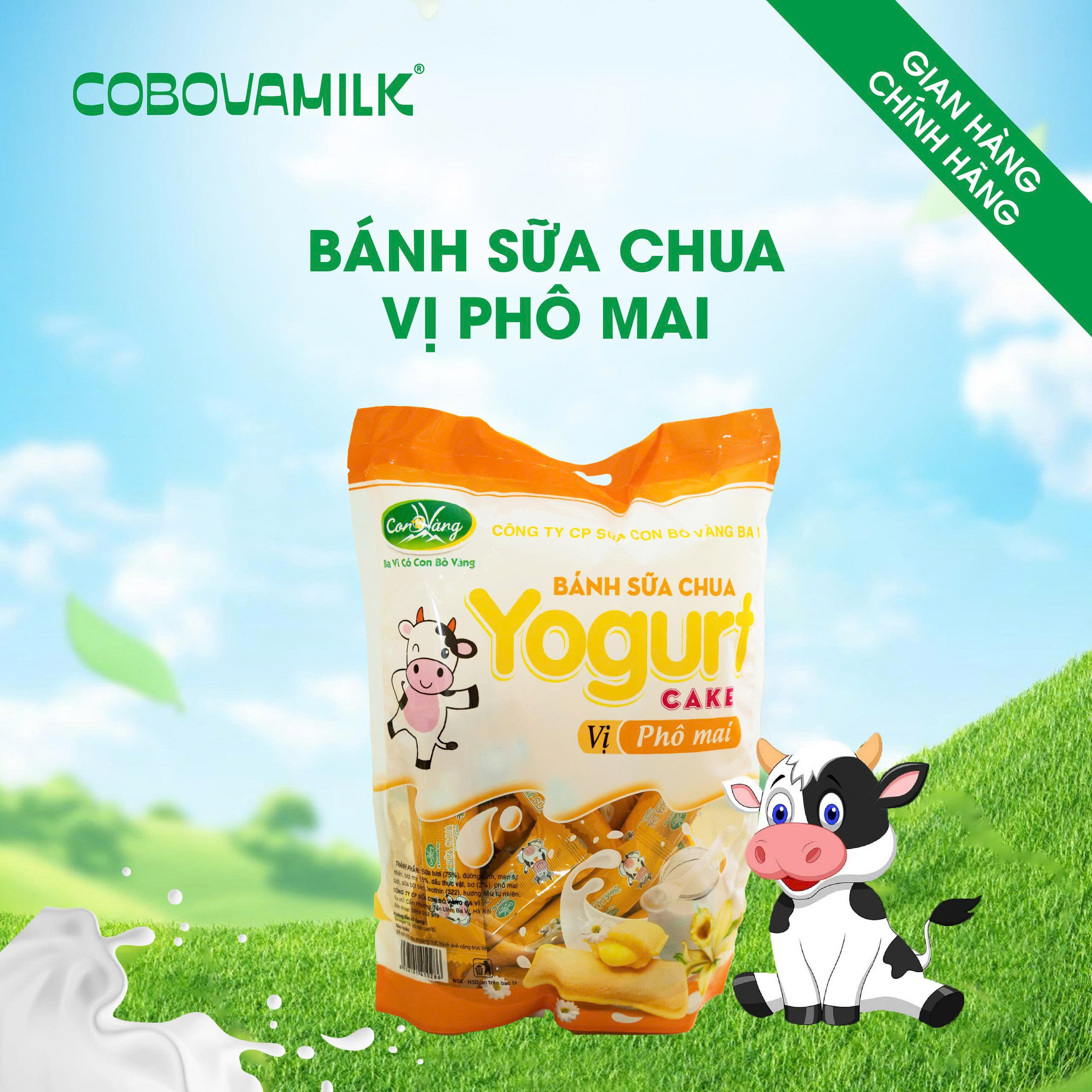 Nếu bạn mê hương vị thanh mát của sữa chua nhưng vẫn muốn cảm giác “cắn và cảm” như bánh ngọt, Bánh Sữa Chua COBOVAMILK chính là món “must-try”. Sản phẩm được chế biến trực tiếp tại Công ty CP Sữa Con Bò Vàng Ba Vì – thương hiệu hơn 18 năm kinh nghiệm với nguồn sữa tươi nguyên chất từ đồng cỏ Ba Vì.