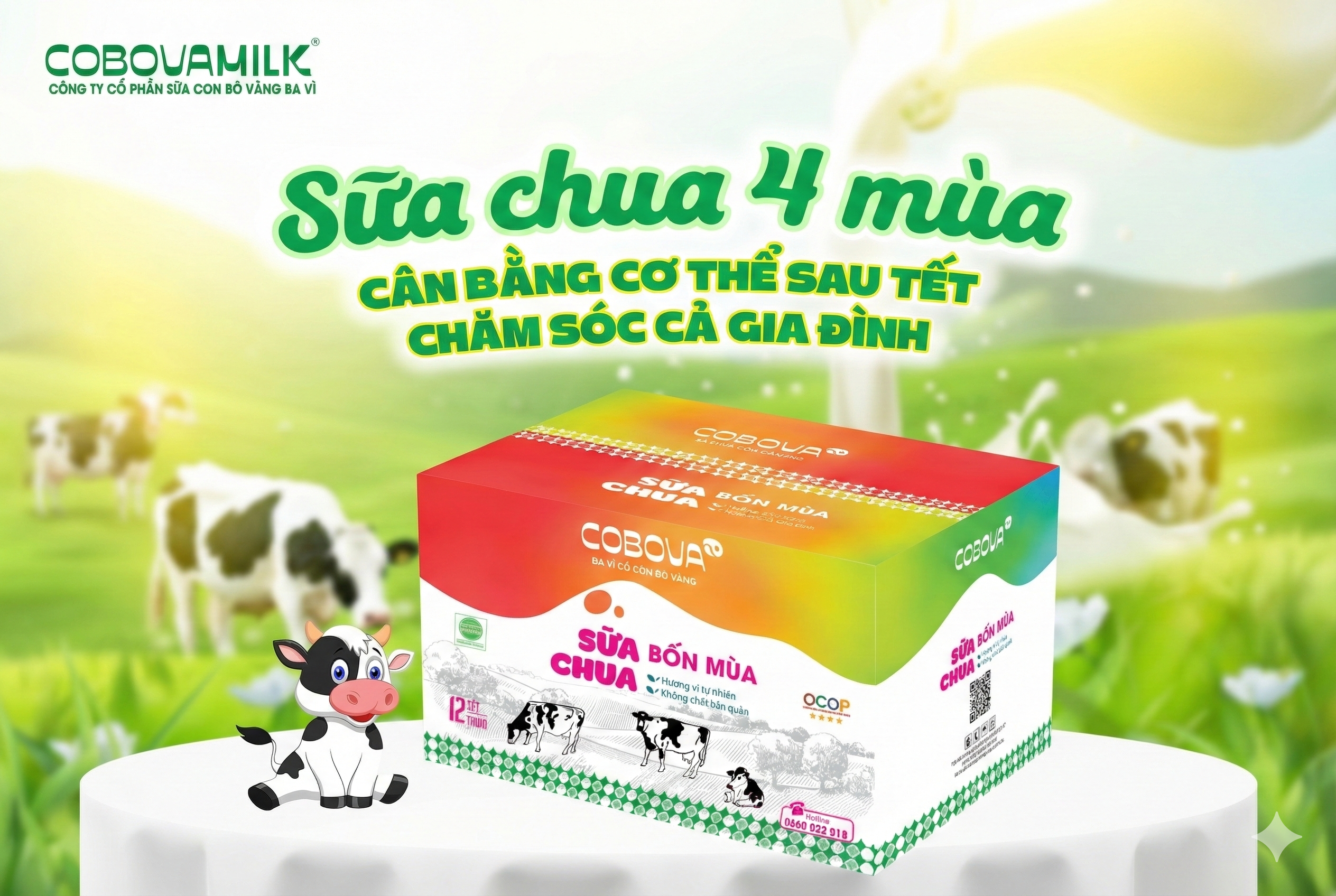 Sữa chua 4 mùa COBOVAMILK được nghiên cứu và phát triển nhằm cung cấp nguồn dinh dưỡng cân bằng, phù hợp với nhu cầu chăm sóc sức khỏe của mọi thành viên trong gia đình. Nhờ chứa các lợi khuẩn có lợi cho hệ tiêu hóa, sản phẩm hỗ trợ duy trì hệ vi sinh đường ruột khỏe mạnh, góp phần giúp cơ thể hấp thu dinh dưỡng hiệu quả hơn.