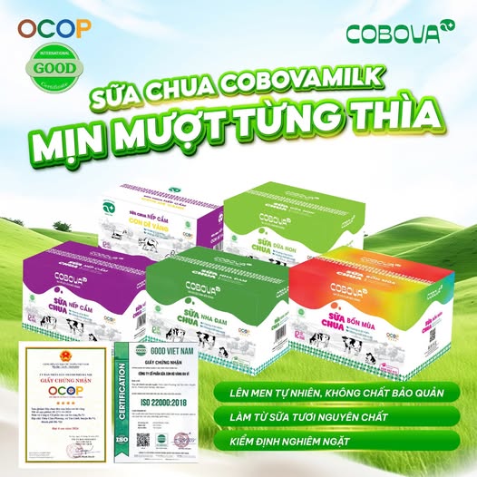 Sản phẩm sữa chua của COBOVAMILK được sản xuất theo dây chuyền công nghệ hiện đại, đảm bảo quy trình vô trùng, kiểm định nghiêm ngặt từ nguyên liệu đến thành phẩm. Nguồn sữa tươi được tuyển chọn kỹ lưỡng từ những trang trại bò sữa tại Ba Vì, kết hợp cùng các nguyên liệu tự nhiên, không chất bảo quản và không phẩm màu nhân tạo, mang đến sự an tâm tuyệt đối cho người tiêu dùng. Không chỉ là món tráng miệng hấp dẫn, các dòng sữa chua COBOVAMILK còn hỗ trợ tiêu hóa, làm đẹp da và tăng cường sức đề kháng, giúp chăm sóc sức khỏe gia đình một cách tự nhiên và hiệu quả.