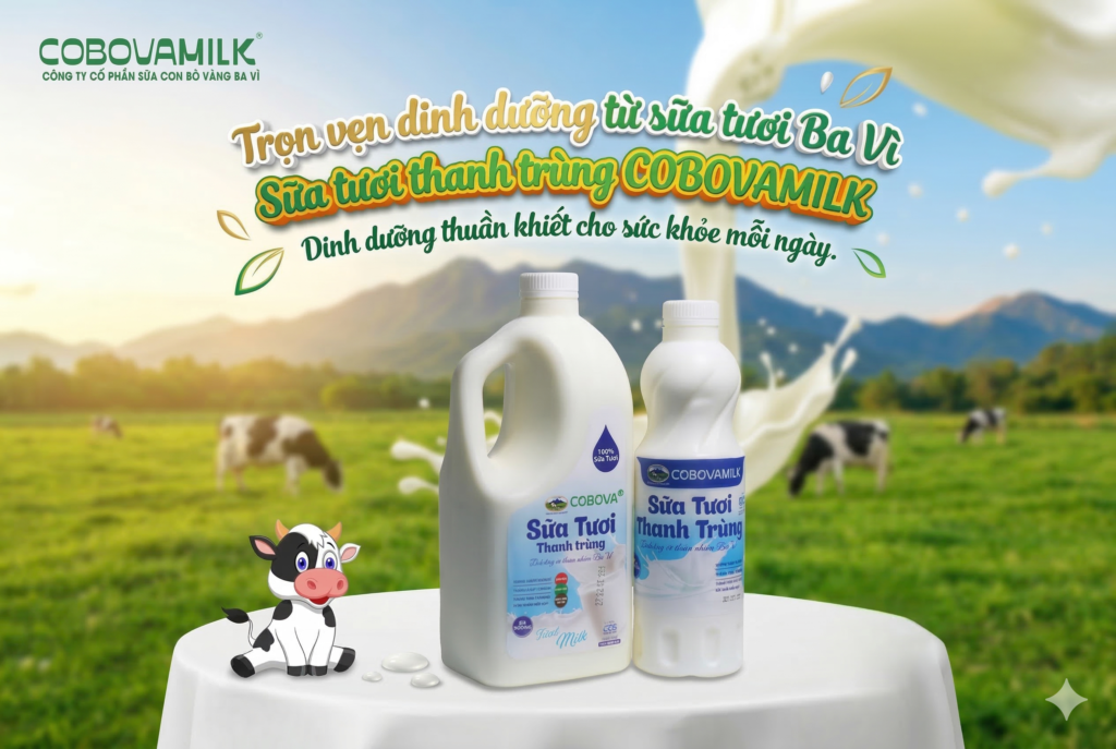 Sữa tươi thanh trùng COBOVAMILK – Tươi ngon từ thiên nhiên Ba Vì mang đến nguồn dinh dưỡng thuần khiết, giúp bổ sung năng lượng, hỗ trợ phát triển thể chất và tăng cường sức khỏe cho cả gia đình.